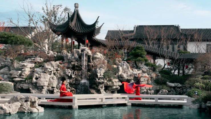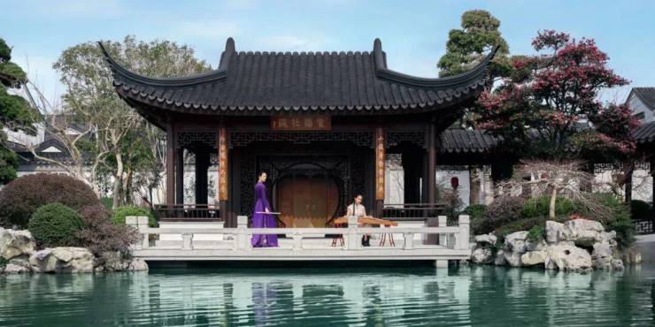 别墅是来自西方的词汇,而中国人为有院子的房子起了一个名字——中式园宅.上海桃花源汇尽五千年大美,集园、巷、宅、院、屋于一身,纳居住、社交、雅集等功能于一体,园林内每一处形制、建材、工艺皆暗含中国文化独有的审美情趣、社交伦理与家族礼仪.四季更迭、时节物候都能在其中找到对应的赏景点,形成了一首流动的诗,在时间和空间的维度上相互交融,实现了“宅在景中,景在宅中”的理念.