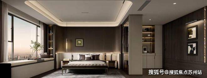 超50㎡的总统级主卧套,它采用了市面少见的双开门设计,自带私密性和尊贵感。