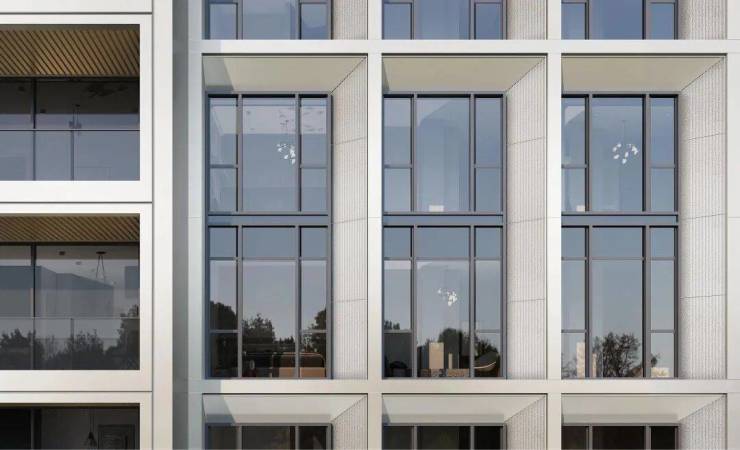 整个立面由新加坡SCDA事务所执笔,材质标准高于常规豪宅,瓷纹釉面干挂陶板+用高精度铝合金型材+金属铝板格栅+大面积全落地高反水晶灰玻璃的组合!上海融创壹号院(单价要卖到近20万一平),它用的也是陶板立面,妥妥的顶级豪宅范儿!