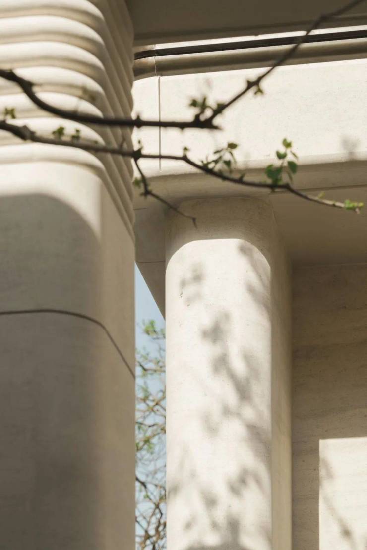 项目立面主材采用沙漠风与白海棠石材,视觉温润,同时石材立面更耐用,经受得起风吹雨打,历久弥新。