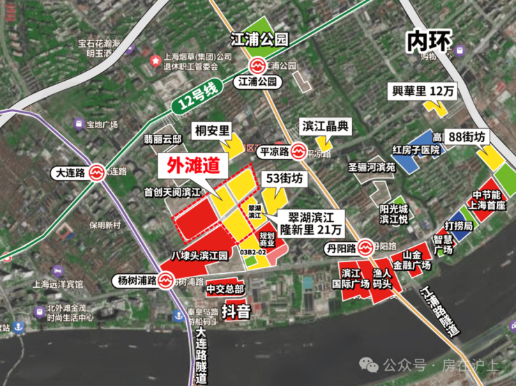 同时,直线2公里内还有新建路隧道、大连路隧道、江浦路隧道以及杨浦大桥直达浦东。从项目到陆家嘴、北外滩和外滩都在15分钟以内(百度地图测量)。