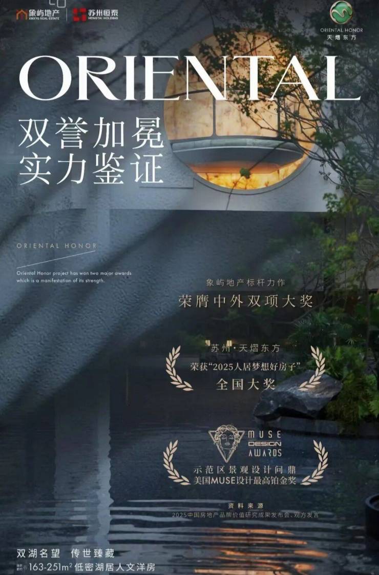 让人惊喜的是——天熠东方凭借其巧妙的设计语言与空间叙事,这一座名为“园·美术馆”的新地标斩获2025人居梦想好房子全国大奖、美国MUSE设计最高铂金奖等国际大奖。