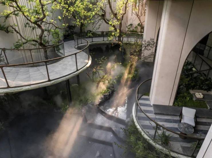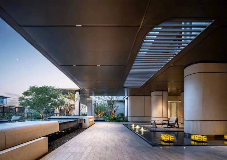 门-廊-庭的入门动线,巧妙地创造出了层层递进的归家感受。天熠东方在一个个的场景转换中,润物无声地深度过滤你的「归家情绪」,这就是大师的功力。