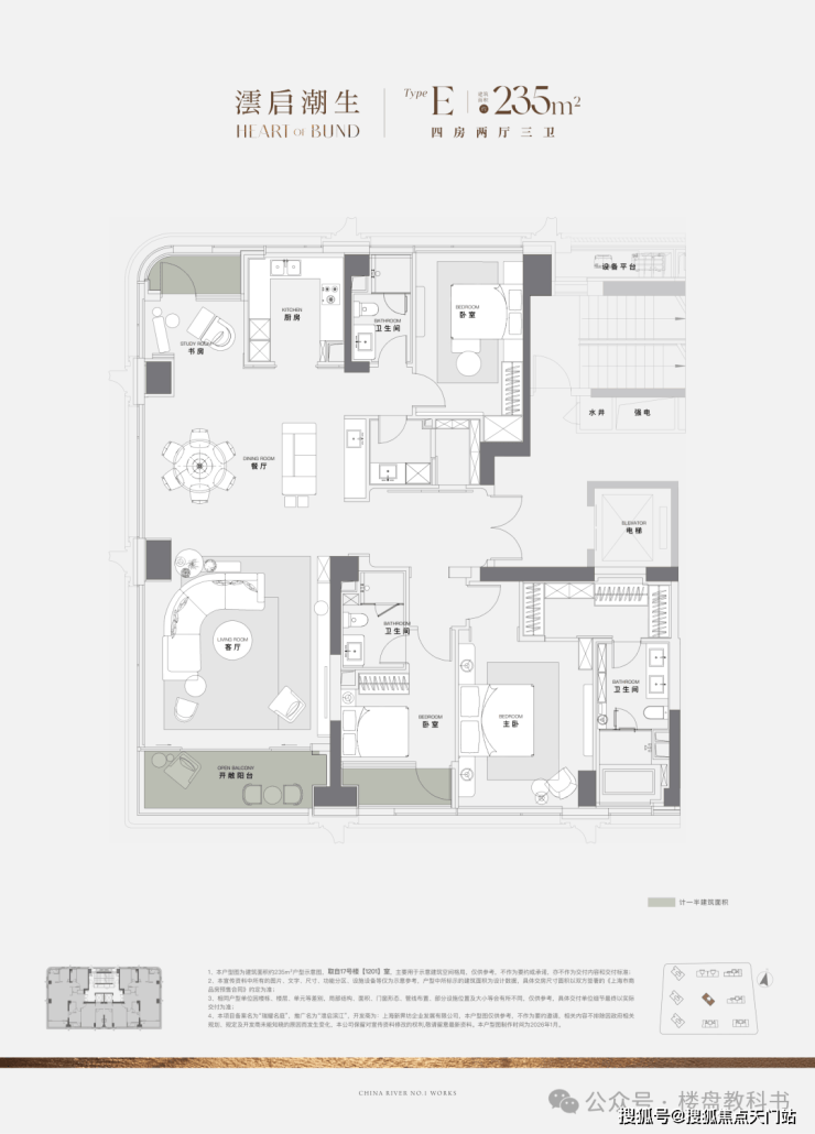 过去10年上海一线滨江住宅,大户型是绝对主流,120㎡级3房产品从未出现。澐启滨江是因2021年后滩九宫格有中小套型指标要求,得以推出120㎡级产品。