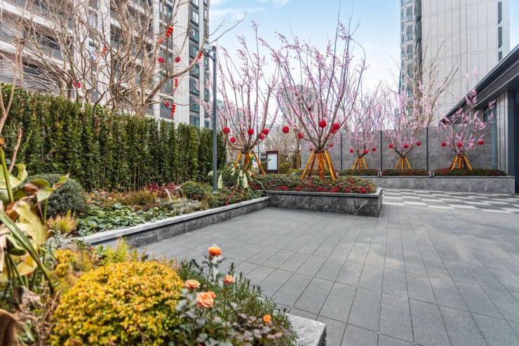 社区园林的营造,以“两轴一环一带五园”为规划骨架,匠心雕琢海派森系园林,综合绿化率约35%的背后,不仅是数据的领先,更是对居住密度的克制和对自然空间的尊重.超大的阳光草坪如一块翡翠镶嵌于社区中央、全冠移植的名贵乔木舒展枝叶,蕴含“四水归堂”传统礼序的主入口景观层层递进,共同构建了一个有层次、有温度、可参与的社区生态.