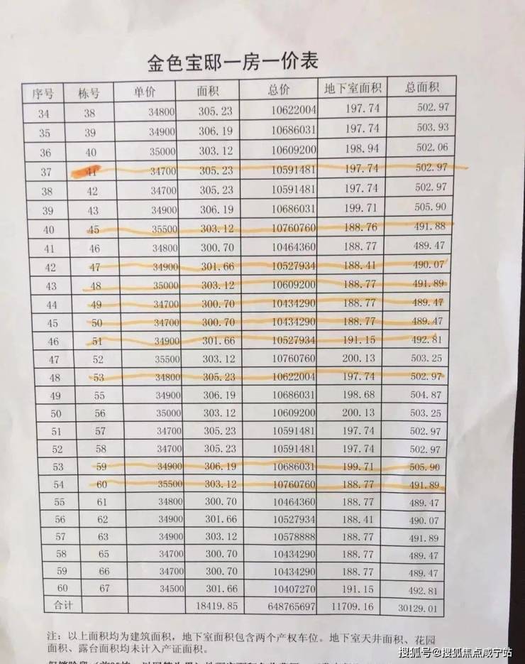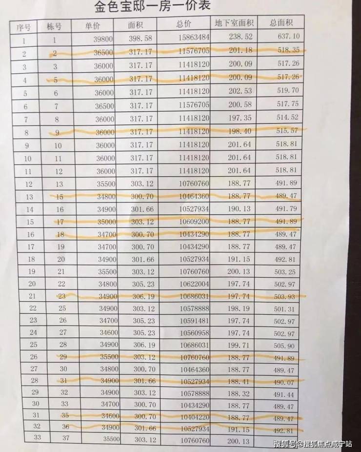附一房一价表:
