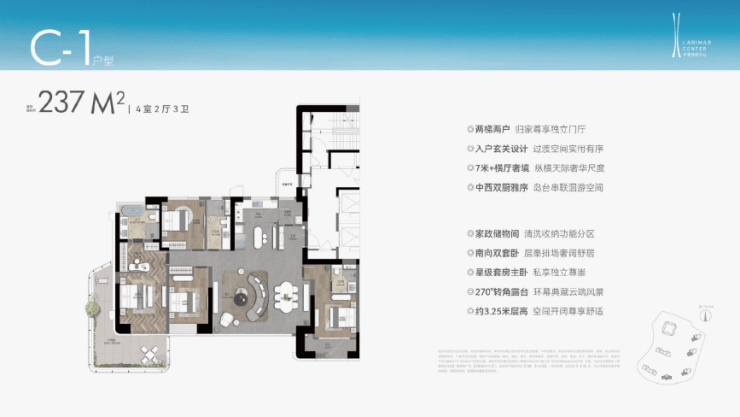 项目主打建面约186-275㎡的纯粹改善大平层,每一户都是稀缺的藏品。低区户型配有瞰湖露台,一线环秀湖景仿佛私家庭院;高区则坐拥无遮挡的云端视野。这些高端湖景奢宅,将自然景观与居住空间完美融合。我们来看几个代表户型: