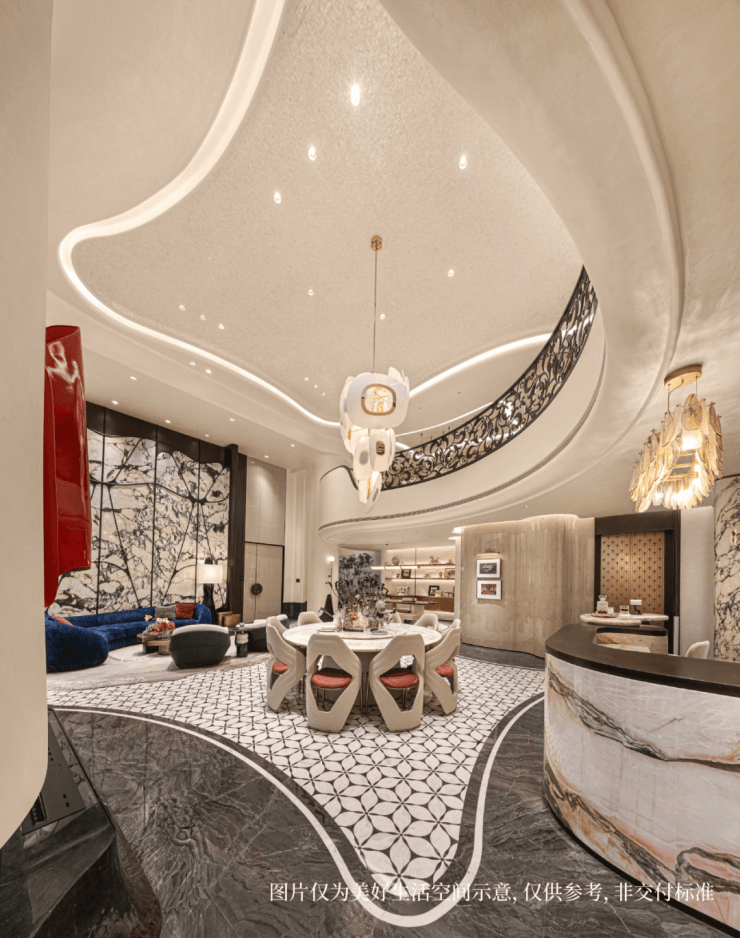 从气势恢宏的玉兰门庭,到摩登开阔的孔雀厅,归家的尊崇心境层层递进,天然石材的温润、艺术光影的雕琢,非遗文脉的新生……超越期待的实景力,仿佛置身梦幻之境,让海派艺韵在实景中真正可触可感。