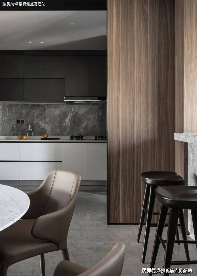 古北壹号公馆售楼处电话☎:400-882-8814(预约热线)✔✔✔往里走是开阔的客餐厨空间,一面以冷静的灰色为主,另一面则以温润的木色装饰,诠释了居室的多样性。