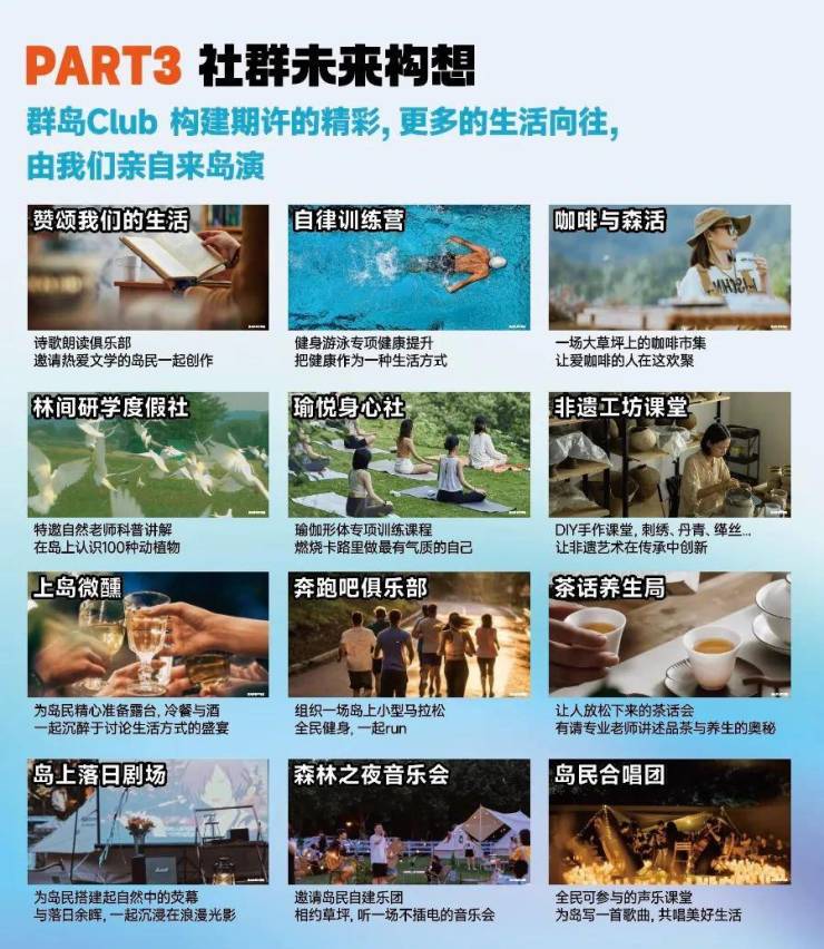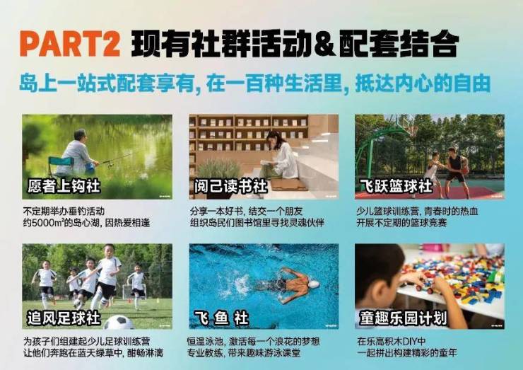 趣岛上,乐享生活。生活最好的样子不是一个人精致,而是一家人的精彩,岛上享有一站式配套社群活动,让业主轻松乐享100种生活。