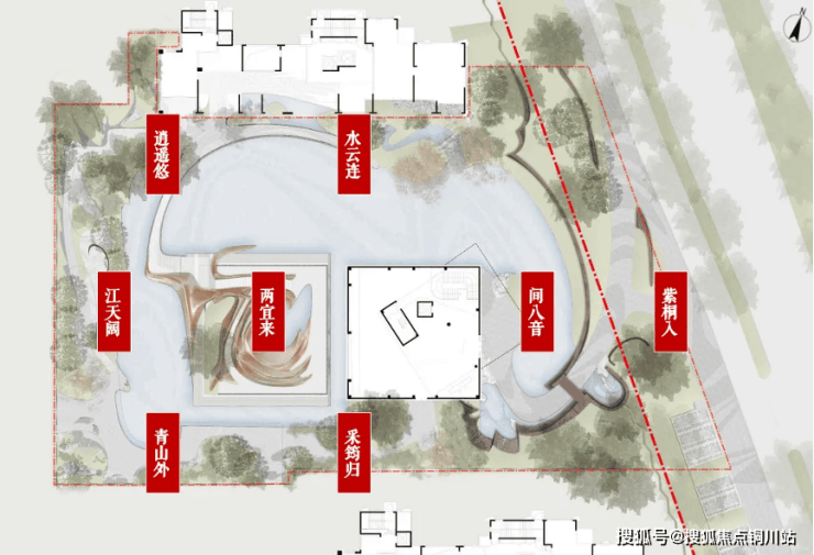 紫桐入-间八音-两宜来,在游走动线中通过视线收窄、景石遮挡、广阔水面设计,既有音乐节奏性,又呼应官派礼乐仪式的起承转合.