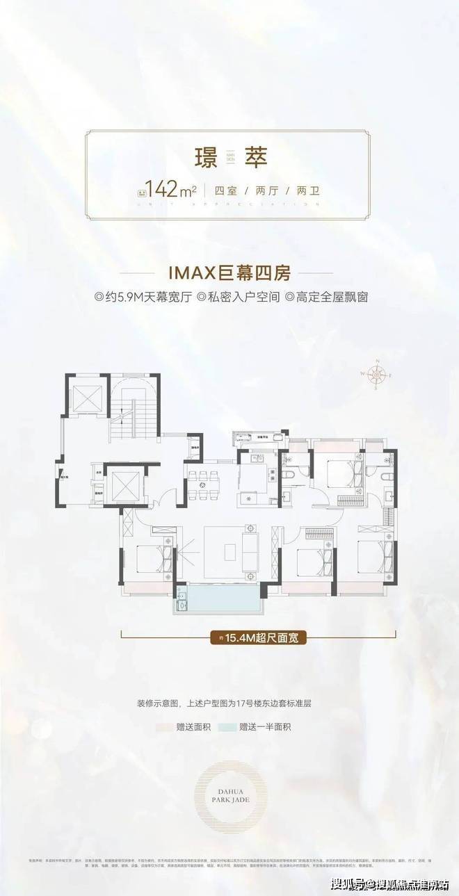 真正一步到位的改善型4房产品,大横厅的设计, 四开间朝南+大横厅,约15.4米的南向面宽堪比别墅。