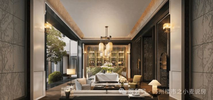 下沉式立体庭院: 近1000㎡的下沉庭院,精选古树名木,复刻苏式园林意境,成为社区里一道流动的风景线。