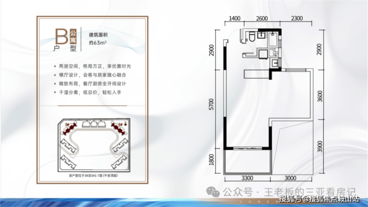 B户型:94㎡2房2厅2卫C户型:95㎡2房2厅2卫D户型:85㎡2房2厅1卫商业办公户型图:A户型:46㎡1房1厅1卫B户型:63㎡2房2厅1卫B1户型:63㎡1房2厅1卫