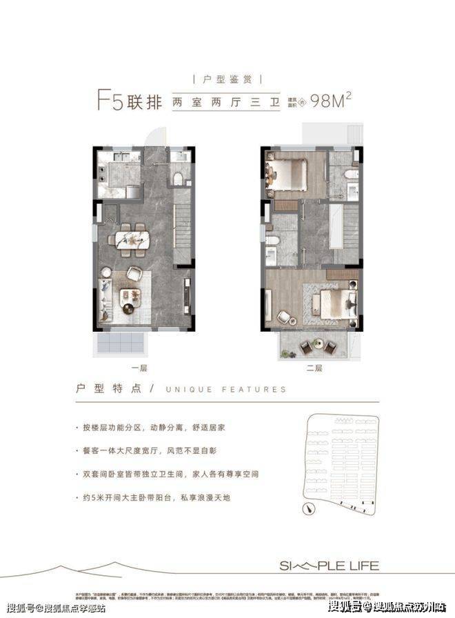 层高:洋房2.9米,联排客厅挑空约6米