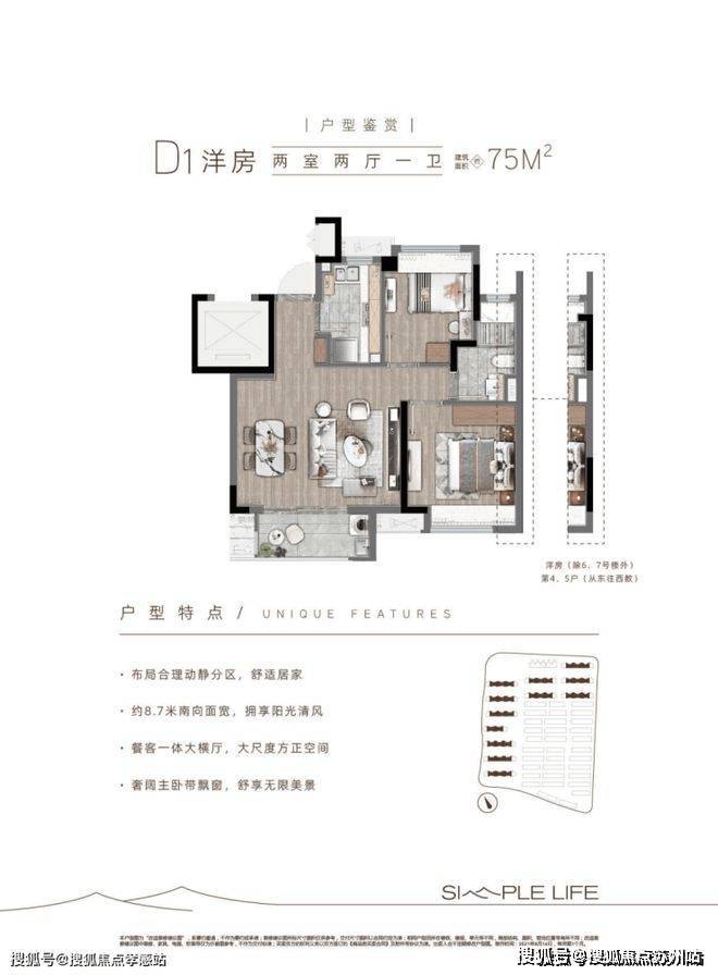 项目合计47幢楼,其中洋房12幢554套,联排33幢301套,项目整体分两批次推出,总计855套。采用人车分流,即保证社区整体设计的美观,又保证业主的安全性,车位有920个,做到1:1的比例。