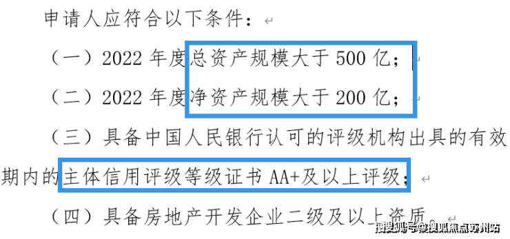 在意向方遴选条件上,除了常规的对企业的总资产规模、净资产规模、主体信用,房地产开发资质等做了要求之外: