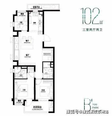 保利光合跃城营销中心:400-8123-664☎106㎡户型全明且三开间朝南,整个户型公区几乎没有面积浪费,且做出了大面宽,短进深的设计。这个户型无论是采光通风,还是空间感和尺度感都远超同价位其他竞品。客餐厨一体化的LDKB设计则将原本分离的空间整合在一起,提高了空间的使用效率,更促进了家人之间的互动和交流。