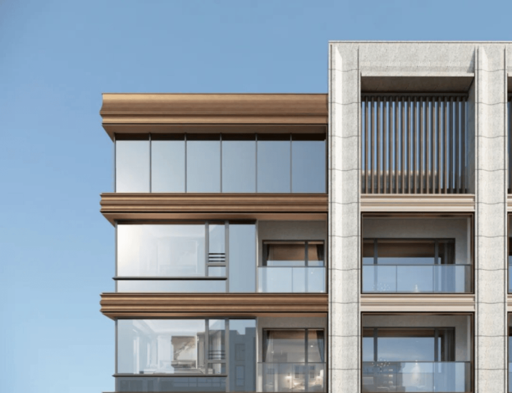 项目可视面都是古铜色金属铝板、米黄色铝板/石材、边套270°大转角飘窗,你看不到真石漆,质感满满。