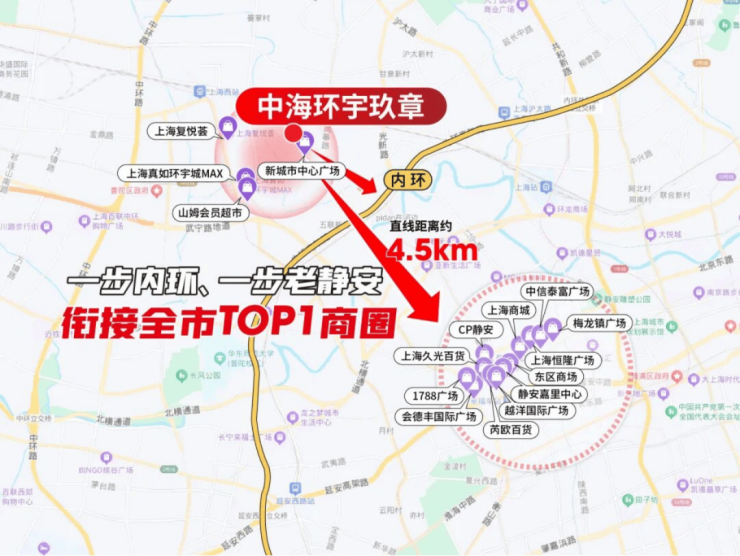 真如作为上海副中心,本身能级高且区位得天独厚——一步内环,紧邻的是全市TOP1静安寺、南京西路商圈,板块竞争力超过同环线区域。