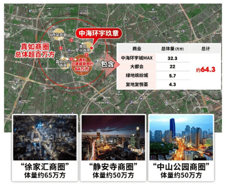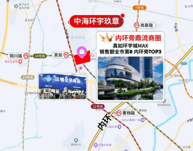 内环旁TOP级商圈,约64.3万方成熟商业集群,含约32万方顶流真如环宇城MAX(全市销售额前10的商业体)及市中心唯一山姆会员店。