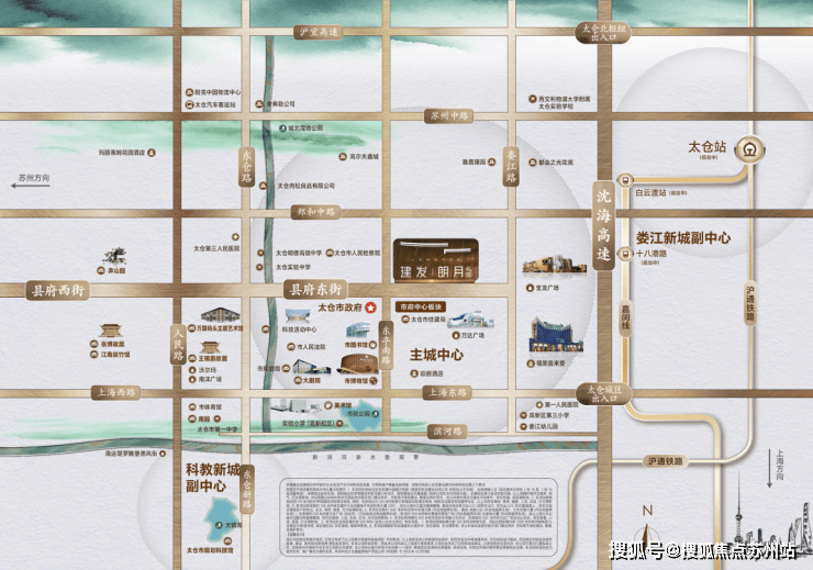 板块内核聚华景城市中心商务楼、汇金大厦、财富广场和商务写字楼,虹吸全城财富和人才,定义太仓价值高地。