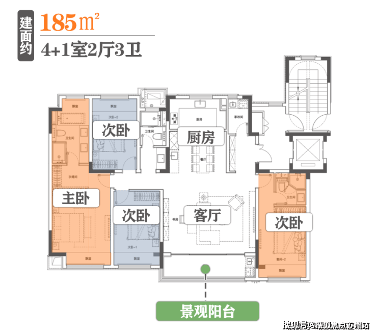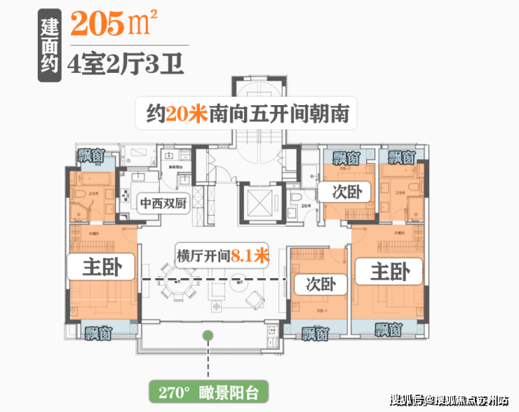最后,咱们再来看看项目户型,这应该是我今年看到最好的豪宅户型之一。