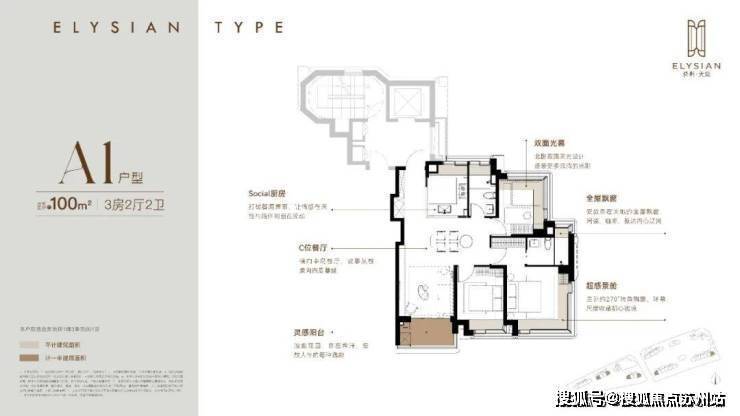 约100m²产品横向C位餐厅设计,交互性和尺度感都做到最大化。尤其是边套户型,南北两个房间都做到270°飘窗,采光和景观面极其优秀。