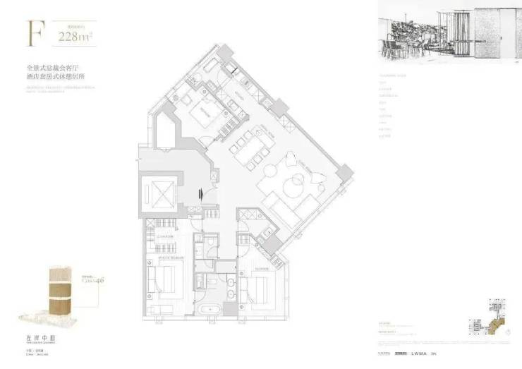 低区户型: 约265㎡四房、约240㎡三房、约228㎡三房,空间尺度奢阔,功能分区明晰。