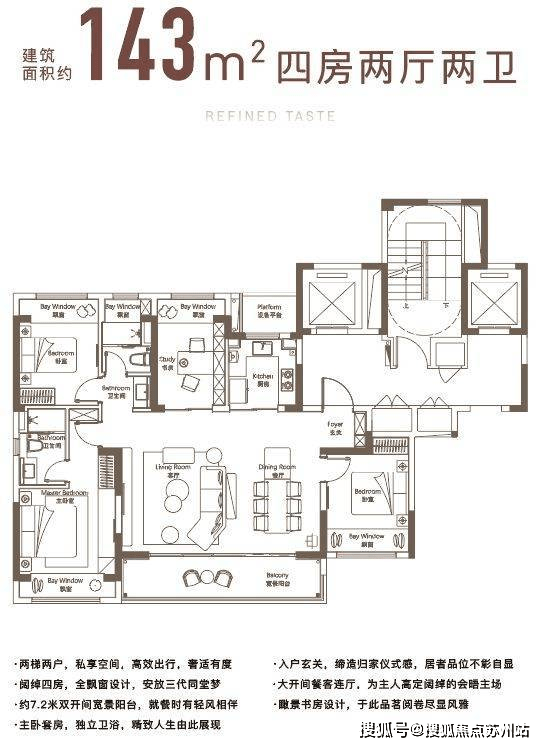 建面约143㎡户型,充分考量了一家三代的居住需求。