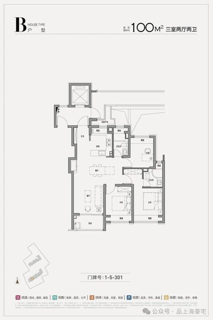1#总高16层(一楼架空)面积:99-103平1梯2户,共三个单元,三房两厅两卫