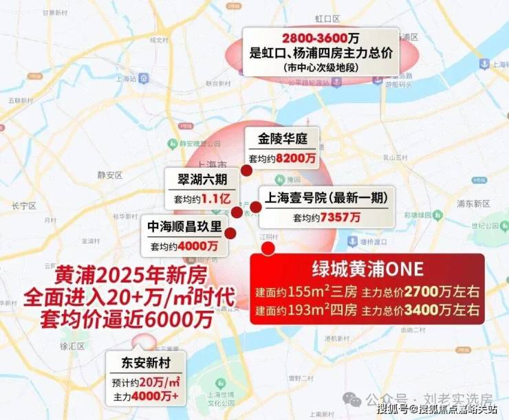 虹口在售新房单价已达16.8万/㎡,绿城地王预期更是19万+/㎡;