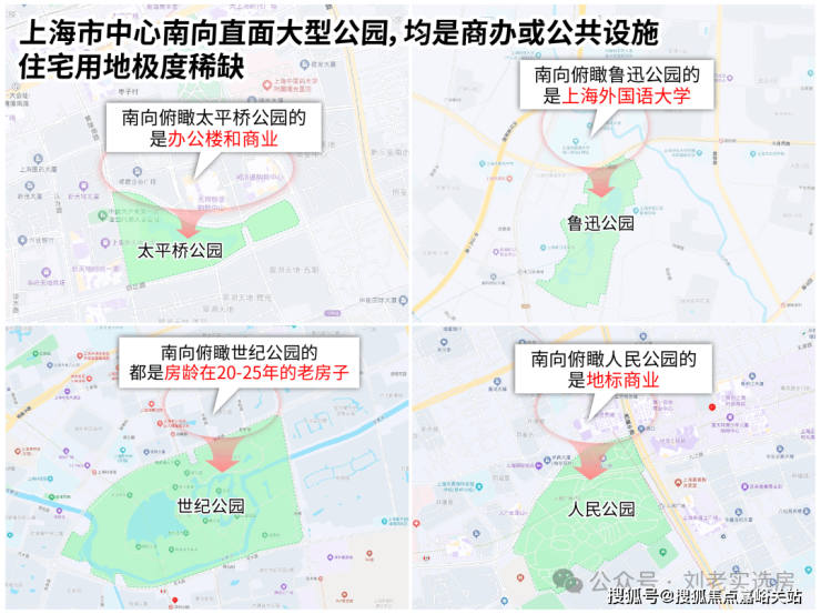 公园边界有限:公园的周长是固定的,能真正“直面”公园(而非斜视、侧视、有遮挡)的土地面积极其有限