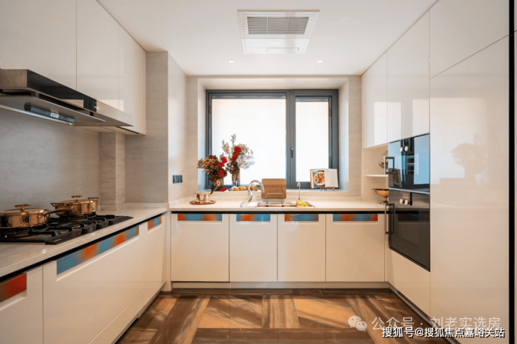 同时项目首创的“艺术柜体”,把艺术家陈亮的“大山水”作品镶嵌在橱柜门把手上;主卧背景墙更是定制款画作与高级木饰面的巧妙拼接