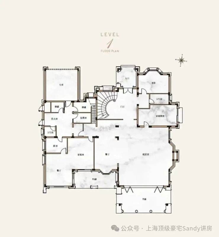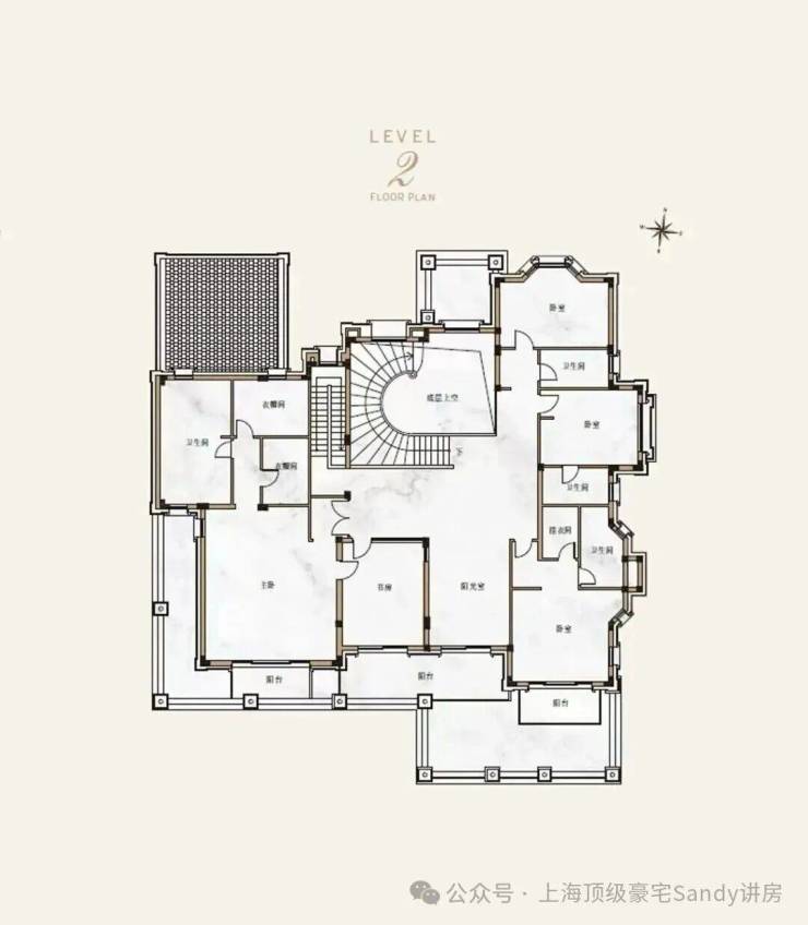 纯地上两层,建面约850㎡(7房4厅6卫)