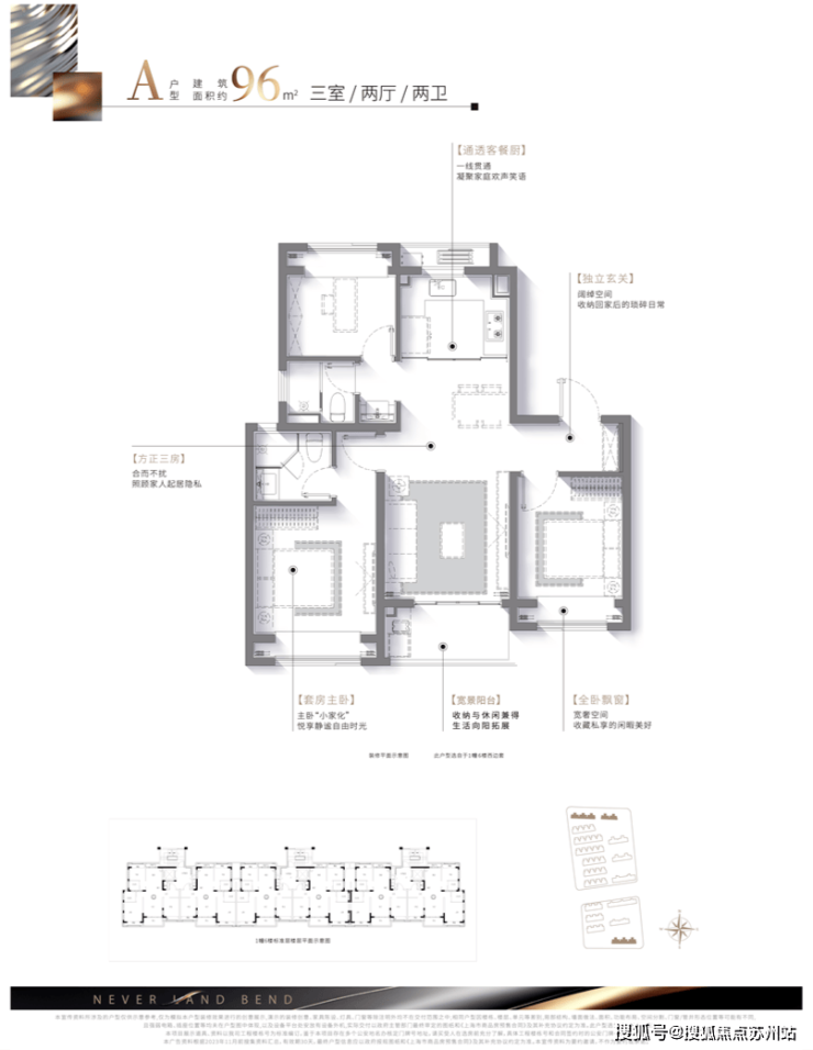 ① 建面约96㎡3房2卫
