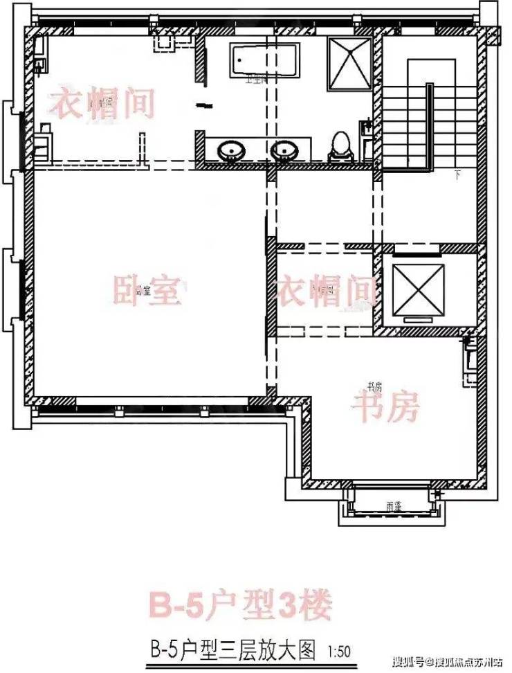 上、下两层二合为一,与标准房的结构方面有区别。