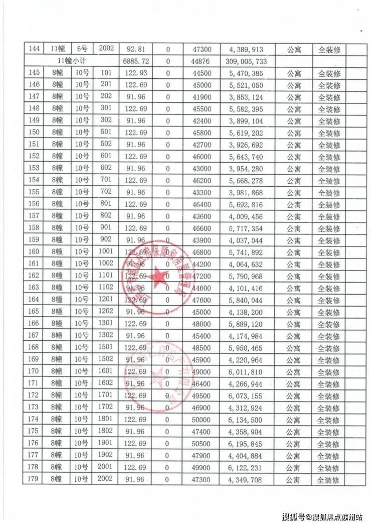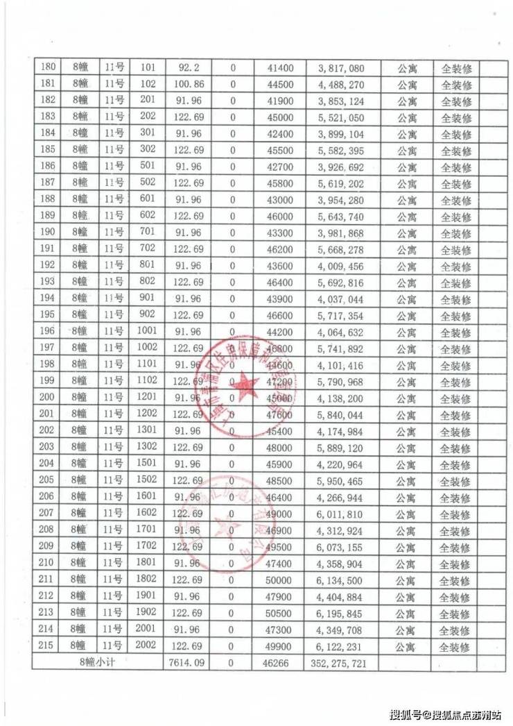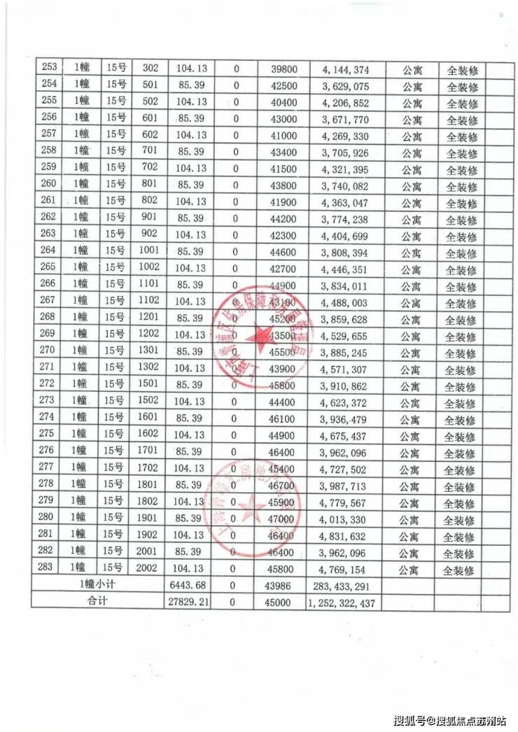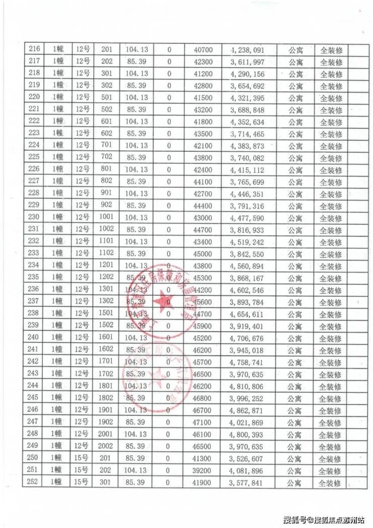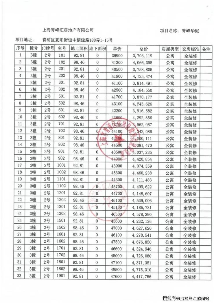 上期一房一价表如下