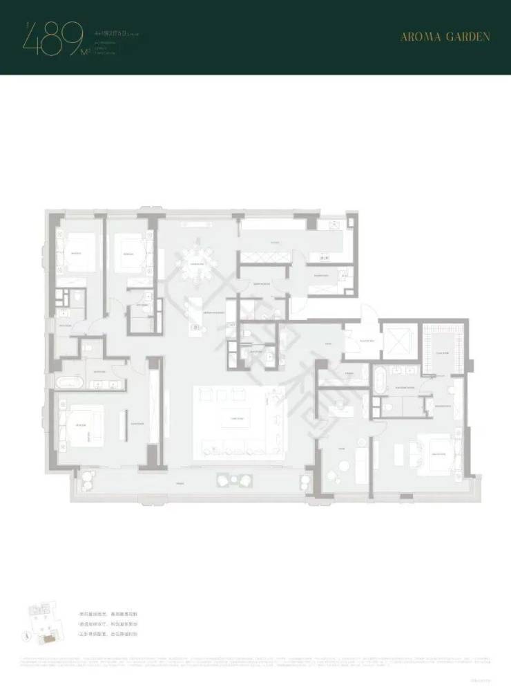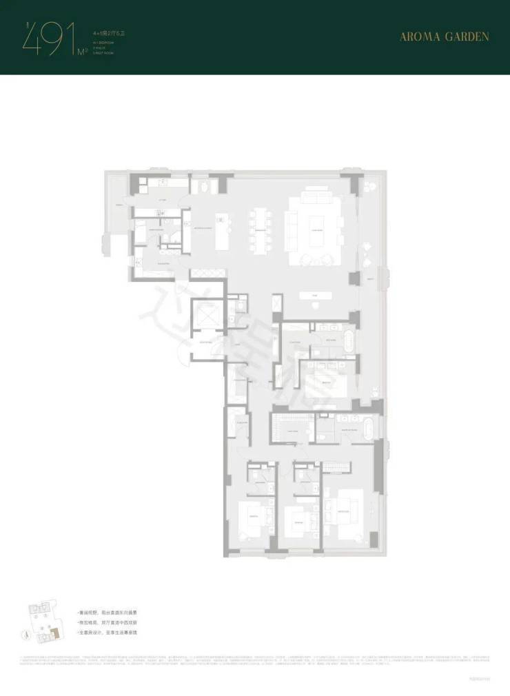建面约491㎡,逾百平方客餐厅一体+270度转角落地窗+可以做”跑道“的超宽尺度花园阳台,拥有这个户型,妥妥人生巅峰.