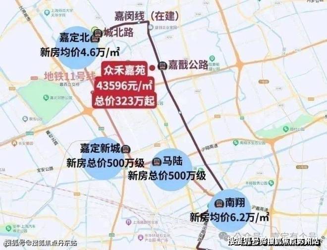 √☎紧邻嘉闵线嘉戬公路站(在建),向北2站即达城北路站,可换乘11号线嘉定北站,区域内的新房均价已达4.6万/㎡;向南两站到达南翔站同样可换乘11号线,区域内新入市的绿城项目单价已来到了6.2万/㎡。还有11号线马陆站、嘉定新城站,区域内的上车门槛已站稳500万级。众禾嘉苑售楼处电话:400-8123-664