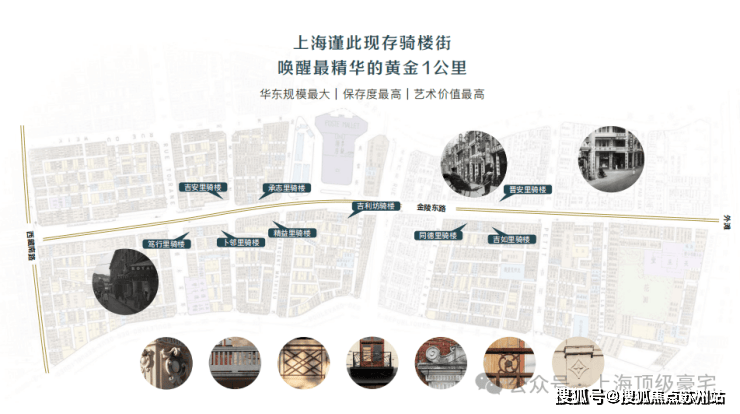 嘉里建设主导更新的10个街坊位于金陵东路中段,全长约1km,正是金陵东路街区中现状骑楼原真性、完整性与连续性最好,街坊肌理文脉留存最多,风貌价值最高的“精华段”。