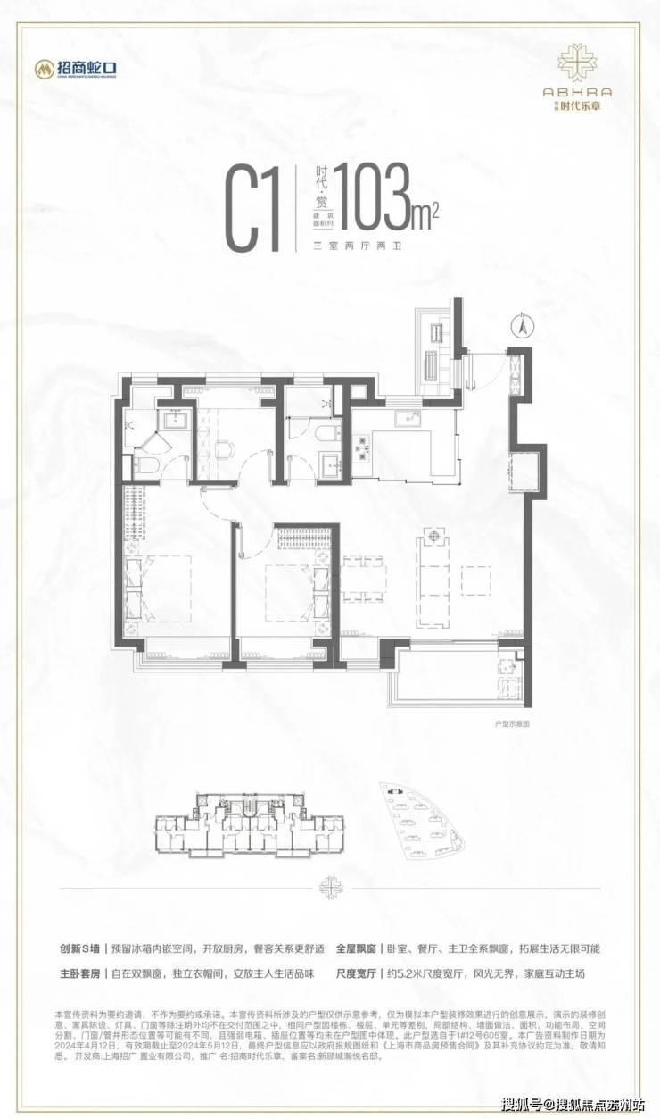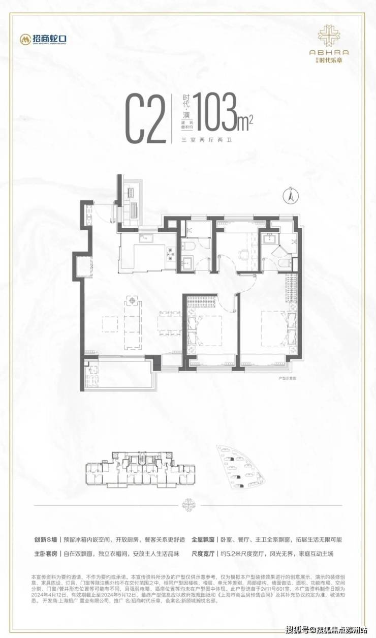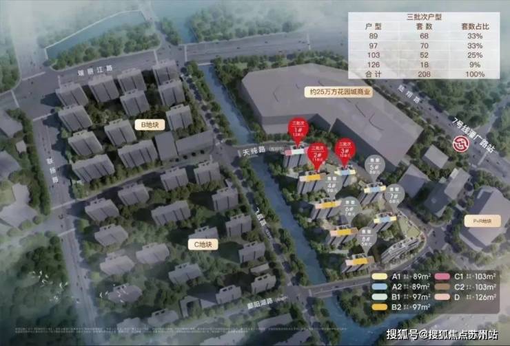 【项目户型】:建面约100m²三房、144 m²四房