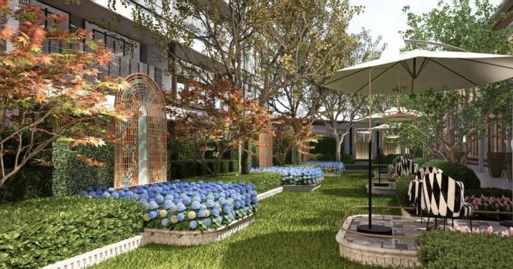 另外,下沉庭院东侧是织梦奇园,兼具趣味感和互动感的儿童乐园。海派生活轴的端点是邻里交互的艺术花园,是业主茶余饭后散步的好去处!