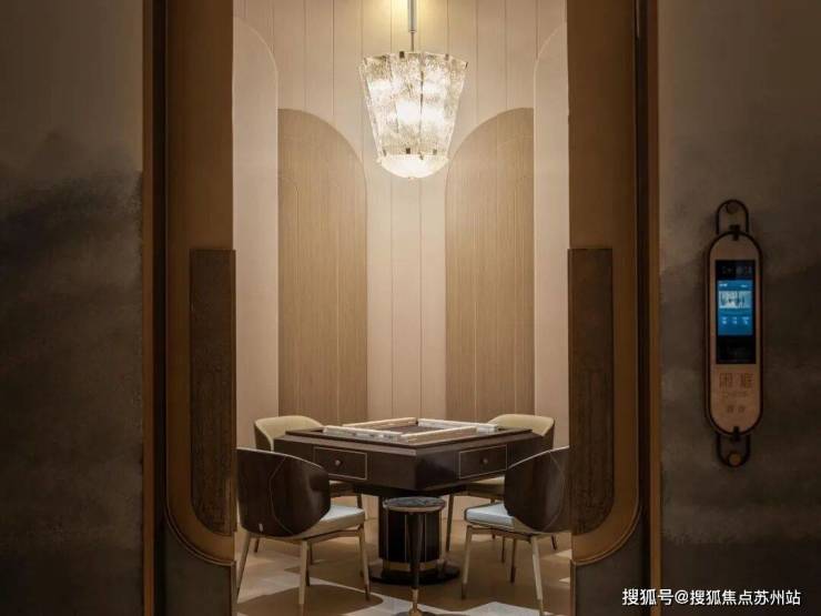 私宴厅&棋牌室承载了业主宴请、聚餐、洽谈、品茗、娱乐等多元社交场景。私宴厅当中悬挂的石材,来自项目团队多番挑选,来自一个 奢石展馆里的孤品,不仅拥有昂贵的蓝色色泽,天生的羽毛状纹理更是罕见!