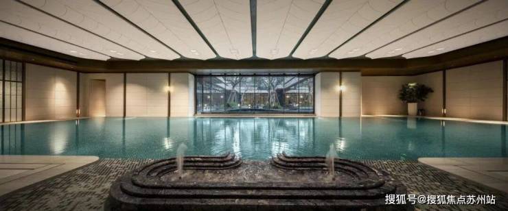 恒温泳池:第一,采用了景德镇烧制的陶瓷马赛克,独特的釉面色彩由 景德镇老师傅手工浇筑而成,充满人文艺术底蕴;第二,羽毛天花造型,由 600余件铝板打造,表面采用了仿贝壳纹的艺术漆处理,带来松弛度假感;第三,不仅配置了约25m×10m的4道泳池,还采用了 奥运会同款空调除湿系统,彰显高档品质细节!