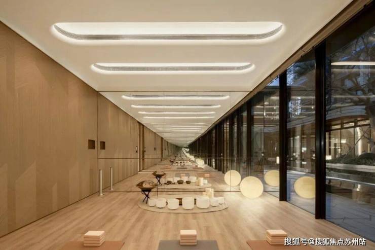 瑜伽室内嵌 七组定制音钵,匹配当下音疗的疗愈趋势,通过多元化、国际化的功能带给业主更便捷、更丰富、更松弛的日常体验。