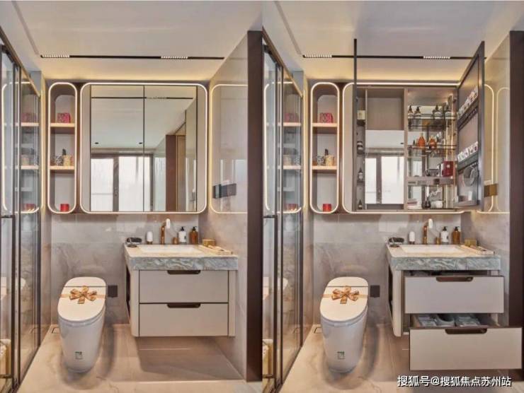 保利天奕特别关注到女性的生活需求,专门在卫生间配备了 科勒美颜龙头、美妆镜柜、美妆冰箱,采用 “顶+面双补光照明”,能把“女本位”需求做到如此细致,目前没有几个项目能做到!