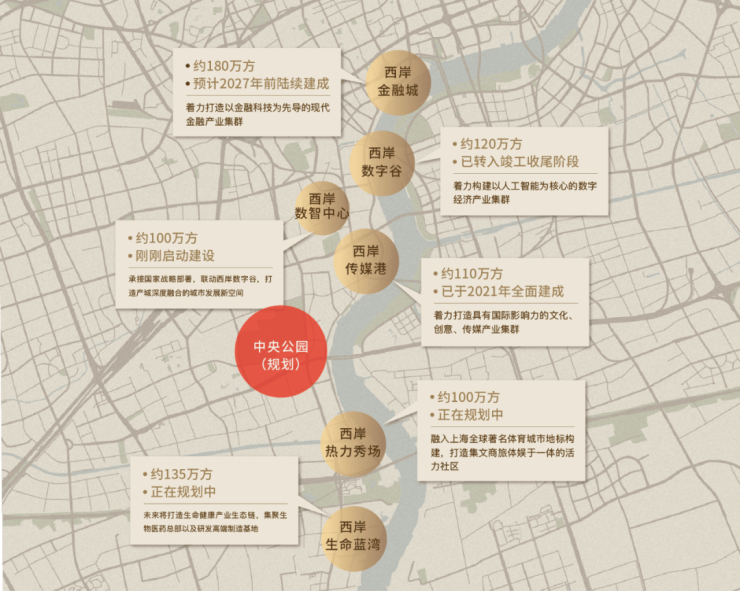 徐汇滨江热度之高,是得益于远瞻世界的战略规划,徐汇滨江打造“世界卓越水岸”,规划有百万方规划组团.徐汇滨江迄今已规划六个百万方组团,聚焦⼀港、⼀⾕、⼀城、⼀场、⼀湾、⼀心的六个百万⽅空间布局(⻄岸⾦融城、⻄岸数字⾕、⻄岸数智中心、⻄岸传媒港、⻄岸热⼒秀场和⻄岸⽣命蓝湾),而第七大组团“中央公园”,完美覆盖海上·清和玺所在上海植物园区域,未来将无界链接城市生态资源,促进徐汇滨江与城区无界融合、兑现徐汇滨江的高质量发展.