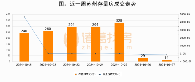 从存量房来看,2024年10月27日苏州存量房单日成交14套,比昨日减少15套,环比下降51.7%。从近一周存量房成交来看,苏州存量房日均成交套数为208套,10月27日单日成交14套,低于近一周平均水平93.3%。