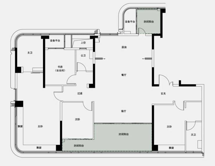 5、主卧转角飘窗,“圆弧”L型大面积采光,视野非常开阔,主卧还有专门的衣帽空间。